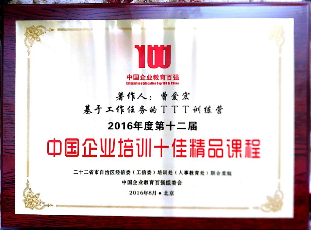 中國企業教育百強2016年度 《中國企業培訓十佳精品課程》
